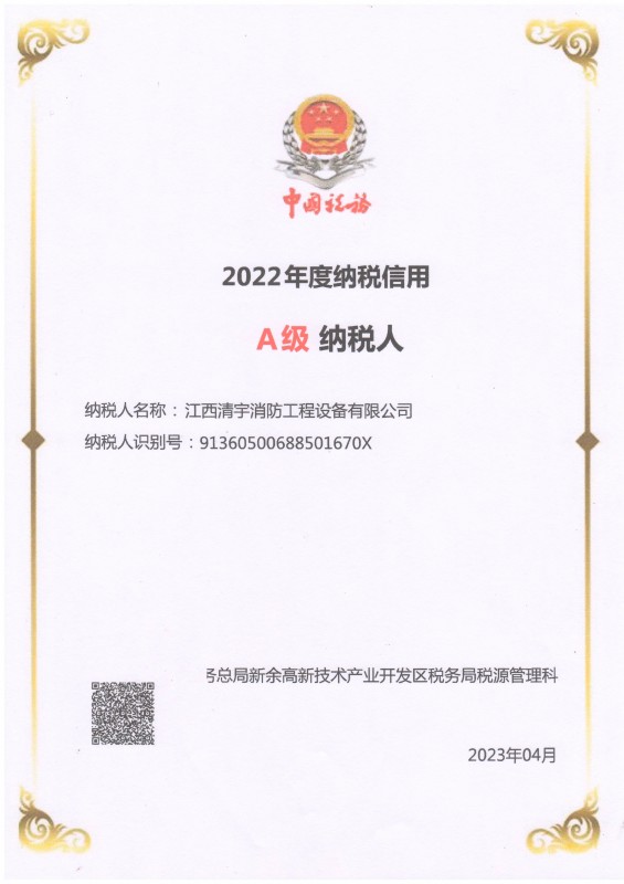 • 2022年度A級納稅信用證書